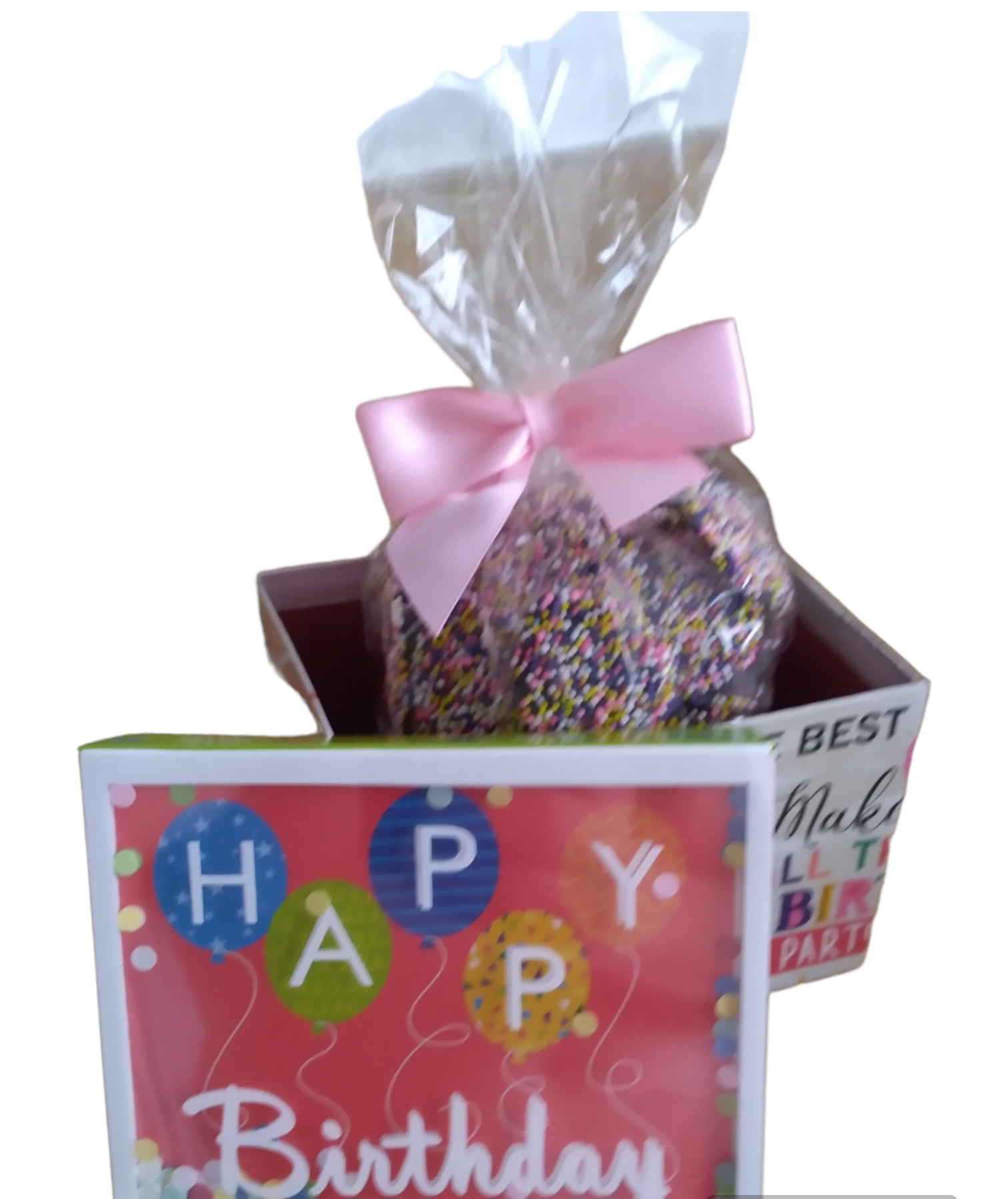 No matter what occasion, one of our celebration items is the perfect gift. Whether it's for a birthday, get-well wish, anniversary, way to go, thanks or just thinking of you, you can't go wrong with one of our gift items. Choose pre-selected confections, or choose your own single confection. All gifts are 7 - 9 oz. The box design will vary.