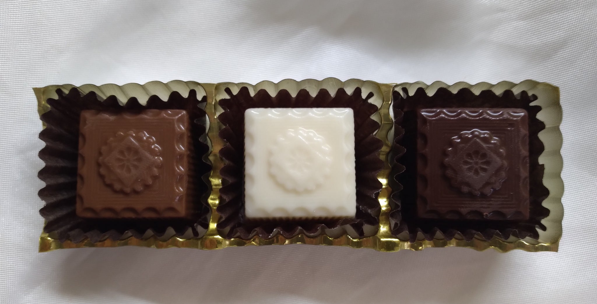 Solids Squares in our Creamy Milk, Dark, or White Chocolate.