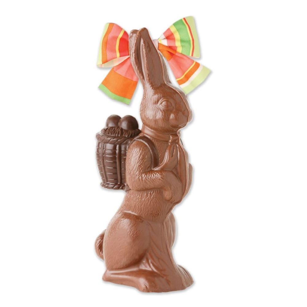 Solid Standing Bunny with Basket is available in small and medium sizes in Milk or Dark Chocolate.